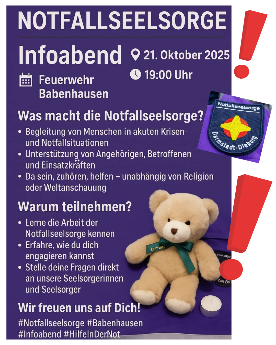 Sie können sich vorstellen, die Notfallseelsorge Südhessen mit Ihrem Engagement zu unterstützen? Großartig! Die Notfallseelsorge ist an 365 Tagen ...